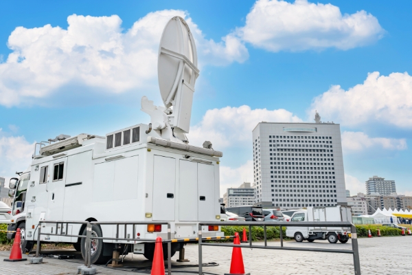 放送局の素材伝送に欠かせないSNG(Satellite News Gathering)は、主に全国で発生した事件・事故・災害等の際に、通信衛星を経由して日本中どこからでも伝送可能である事から、その機動性や衛星通信の同報性を活かし、番組中継や、素材伝送等に活用され、特に報道取材には欠かせない重要なリソースです。