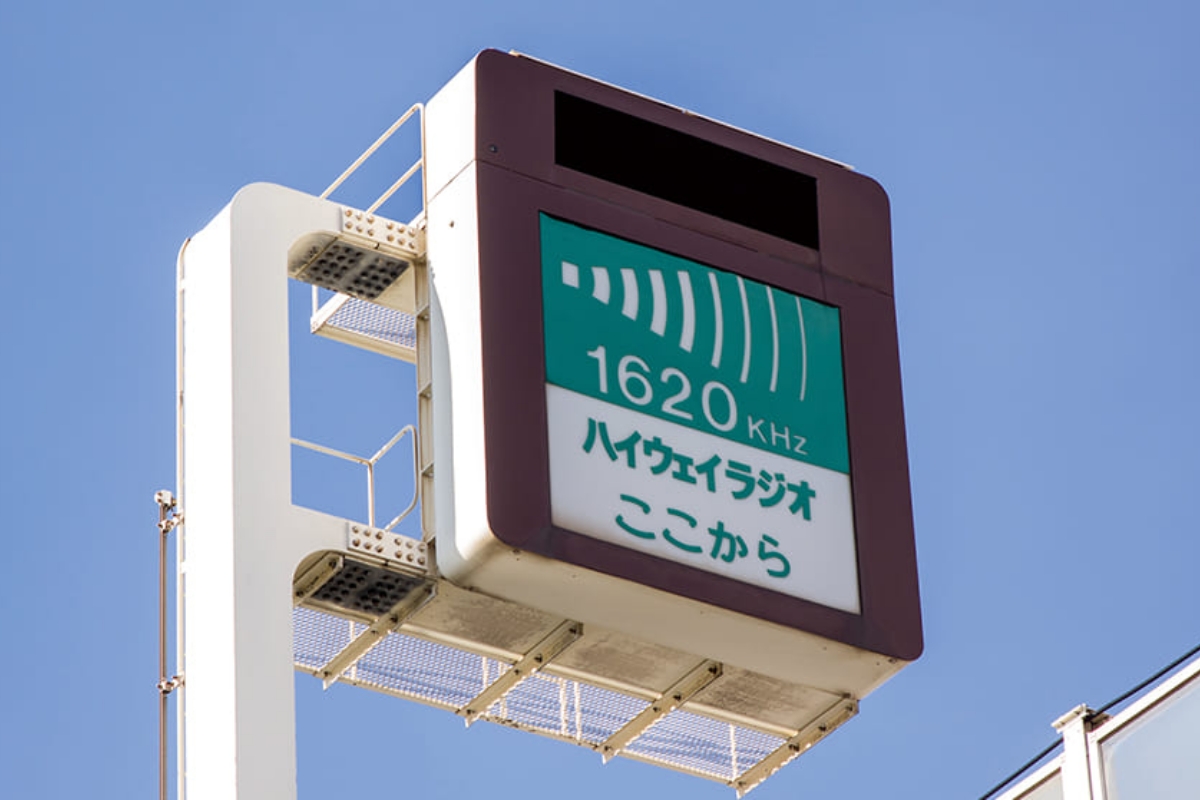 高速道路の交通情報をカーラジオの専用チャンネル(1620KHz)で提供するシステムです。リアルタイムに最新の交通情報を提供しています。