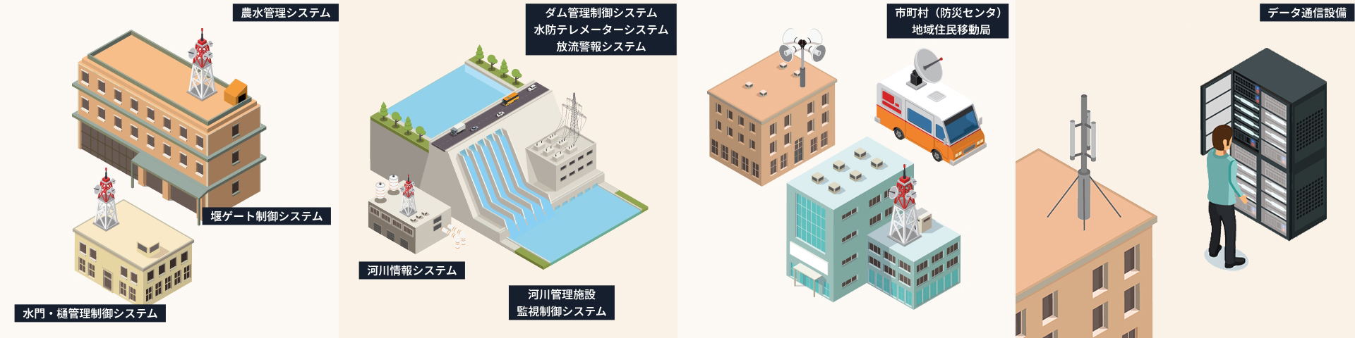 防災行政無線、消防無線、CCTV、IP電話、そして携帯電話基地局の建設まで。